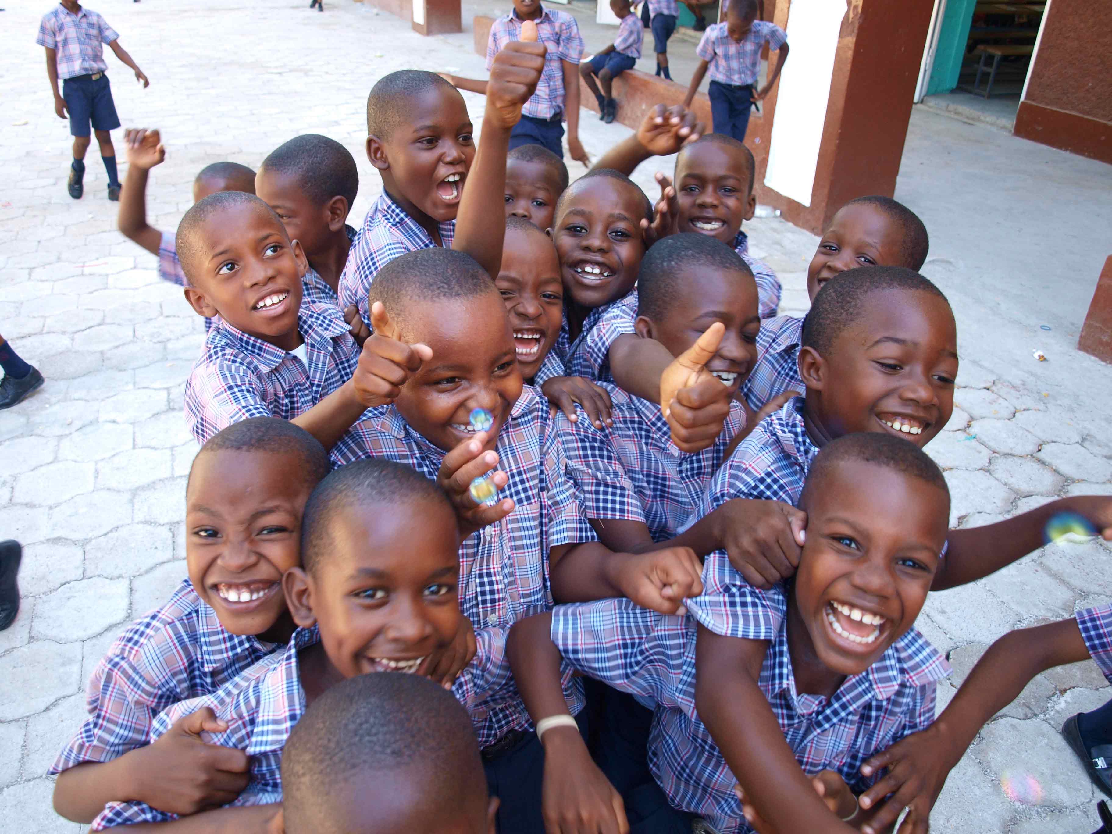 Es un edificio de buena estructura, aunque se han debido hacer algunos arreglos últimamente; un centro educativo de larga trayectoria en Gonaïves, con aulas repletas, de patios bulliciosos en los que cualquier botellín de gaseosa se convierte en balón improvisado.