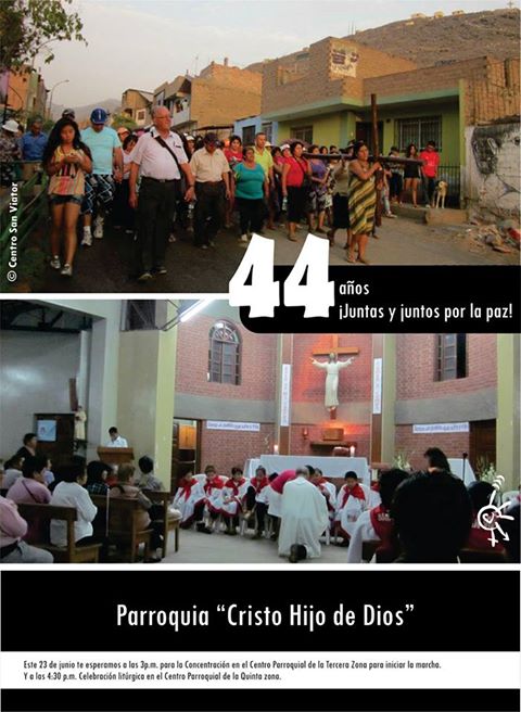El domingo 23 se celebraba la marcha por los 44 años, ¡Juntas y juntos por la Paz!, de la parroquia ‘Cristo, Hijo de Dios’ de Collique. Enhorabuena Viatores y Comunidad Viatoriana por tu todo su trabajo a lo largo de sus años de presencia en Collique. Nuestro fundador, Luis Querbes, estará satisfecho de su trabajo por la construcción del Reino.