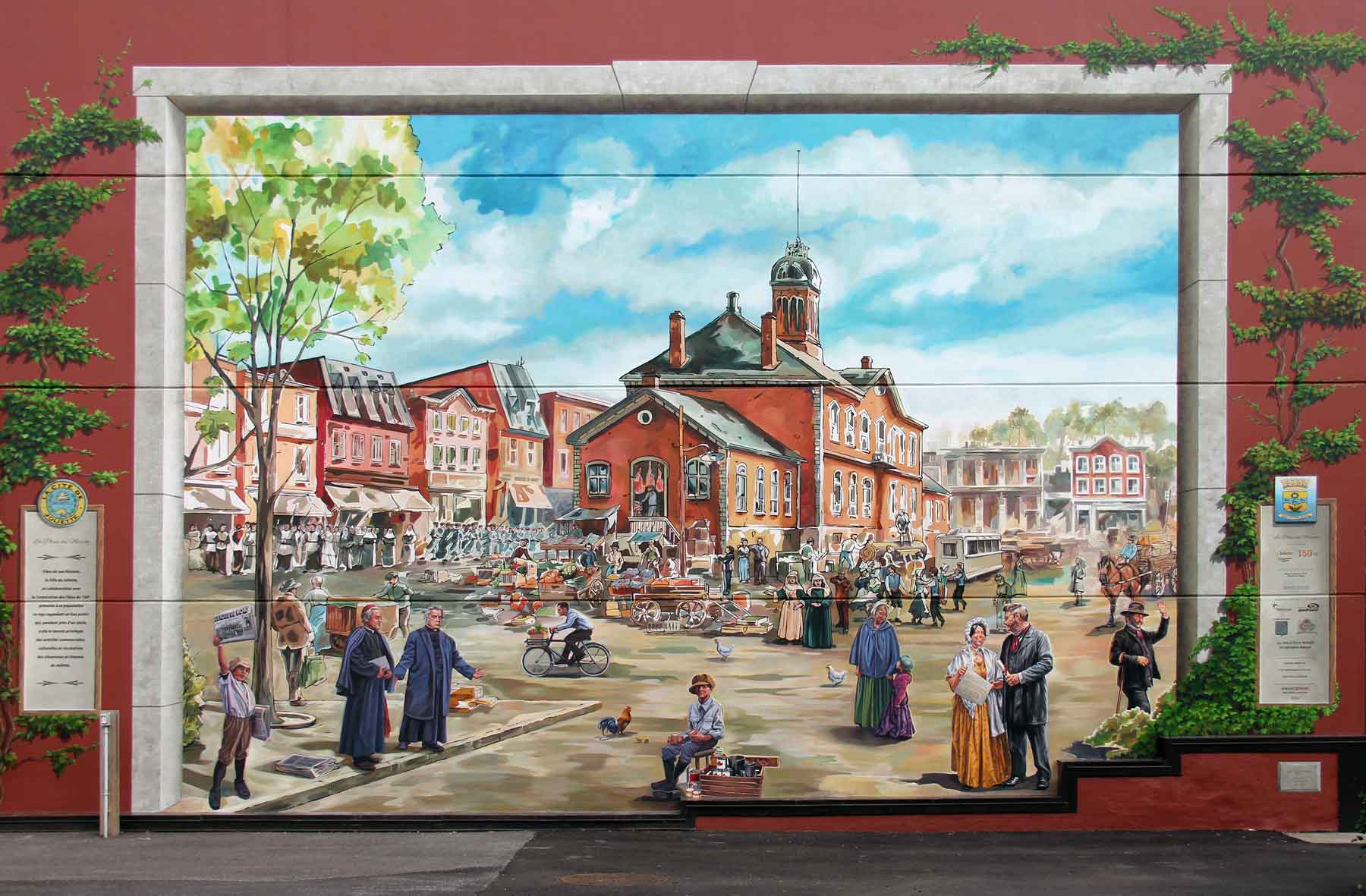 Pour souligner l’événement, la ville a commandé à Murale Création la réalisation d’une fresque extérieure rappelant quelques-unes des grandes figures qui ont marqué l’histoire de Joliette.