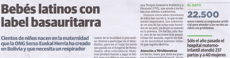 SERSO San Viator y San Jose Ikastetxea siguen apoyando el proyecto de la Maternidad de Basauri en Portachuelo (Bolivia).
