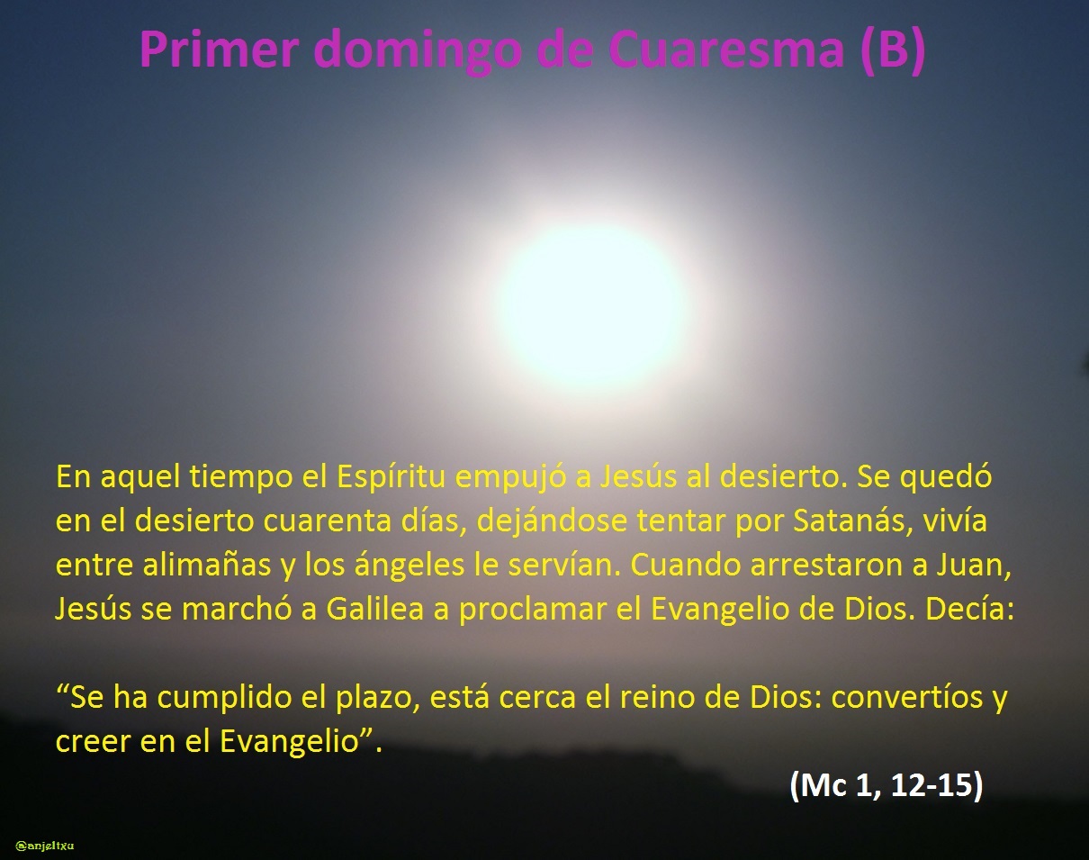 De suyo, parte del evangelio que hemos proclamado hoy ya lo escuchamos hace unos pocos domingos. Podríamos decir que lo “nuevo” del relato que se proclama este primer domingo primero de cuaresma es: “En aquel tiempo el Espíritu empujó a Jesús al desierto. Se quedó en el desierto cuarenta días, dejándose tentar por Satanás, vivía entre alimañas y los ángeles le servían”.