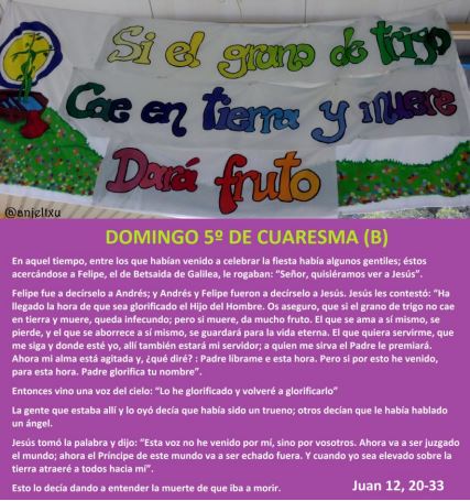 La idea de Jesús es clara. Con la vida sucede lo mismo que con el grano de trigo, que tiene que morir para liberar toda su energía y producir un día fruto. Si «no muere», se queda sola encima del terreno. Por el contrario, si «muere» vuelve a levantarse trayendo consigo nuevos granos y nueva vida.