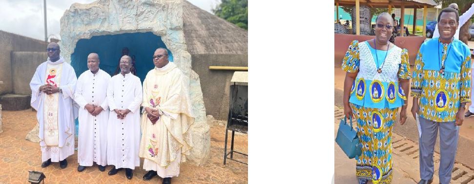 Pour clôturer en beauté l’Assemblée Générale, la communauté Viatorienne était réunie autour des Frères Jean Pierre AMANI et Barthélemy KOUASSI pour leurs 26 ans de vie religieuse et des pères Jean Marc KOUASSI et Sylvain KONAN pour leur 25ans de vie religieuse. La fête fut marquée par une belle célébration eucharistique à la paroisse Notre Dame de Nazareth de Bouaké. A leur suite, le couple AMOAKON a célébré leur 25 ans d’engagement en tant qu’associés Viateur le dimanche 22 Octobre 2023 à la quasi-paroisse Saint Viateur de Bouaké.